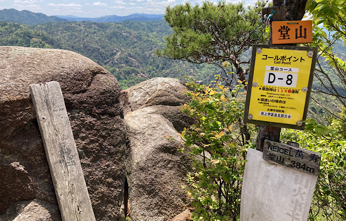 2つのピークがあり、ここが堂山頂上(384m)。この日はわずかなスペースでお昼を食べている登山者が数パーティーいたので、長居せずに下山しました。